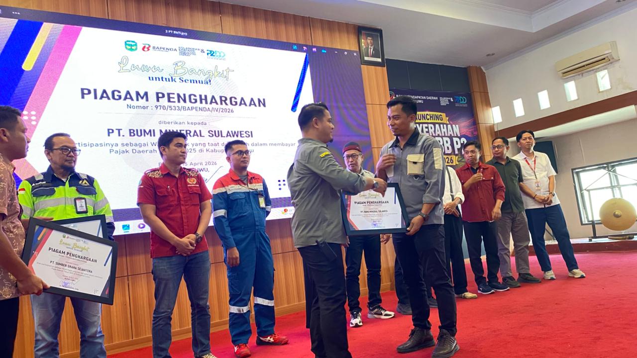 Jpgluwu.com, LUWU – PT Bumi Mineral Sulawesi (BMS) menerima penghargaan dari Pemerintah Kabupaten Luwu atas ketaatan dan kepatuhan dalam memenuhi kewajiban perpajakan daerah.